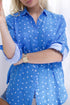 A Brilliant Blue with White Spot Printed Boyfriend Linen Shirt.