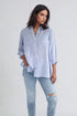 Blue Micro Stripe Peplum Linen Shirt