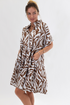 Cocoa and Stone Zebra Print Ruffle Neck Dress
